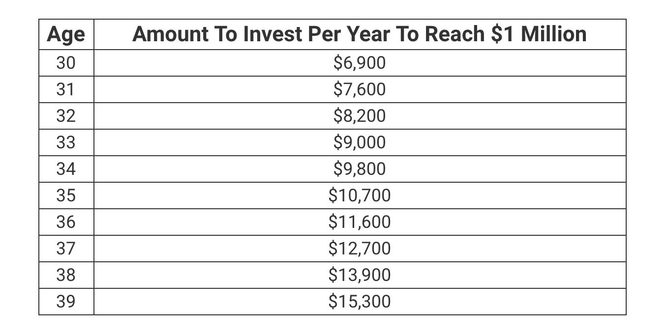 Here is the article where that photo was taken from that has more information about retirement savings in your thirties by The College Investor.